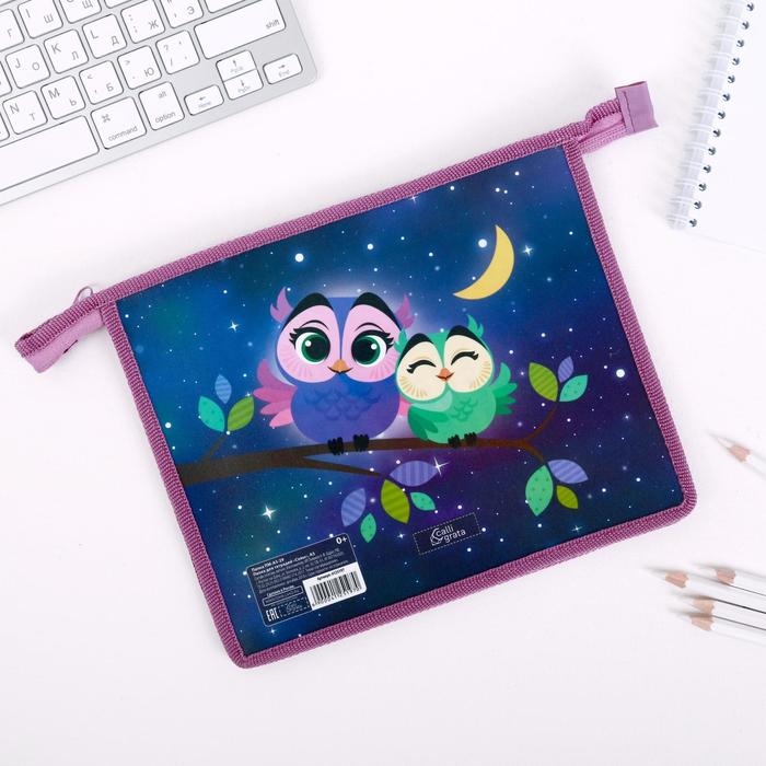 Папка для тетрадей А5, 230 х 190 х 50 мм, молния сверху, пластиковая, Calligrata "Совы"