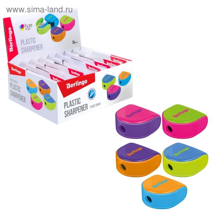 Точилка 1 отверстие с контейнером Berlingo "Fuze Ergo", пласт, блист европодв, микс 269307