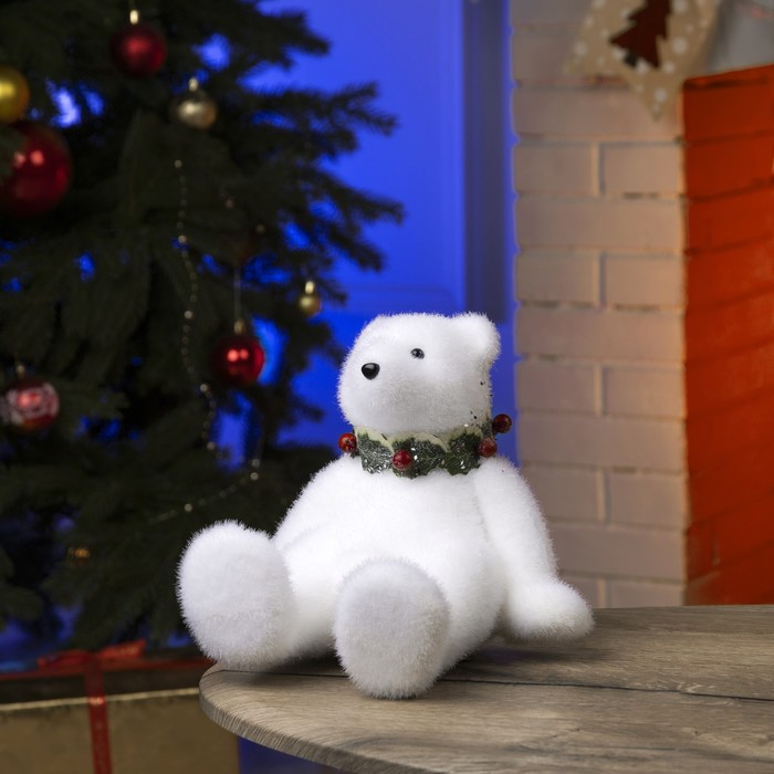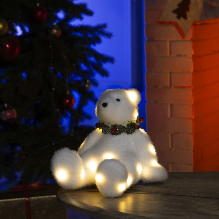 Светодиодная фигура «Мишка» 16 × 17 × 20 см, флок, батарейки CR2032х2 (в комплекте), свечение тёплое белое