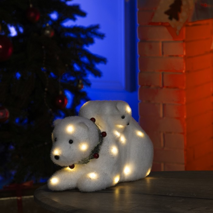 Светодиодная фигура «Медвежата» 26 × 16 × 16 см, флок, батарейки ААх2 (не в комплекте), свечение тёплое белое
