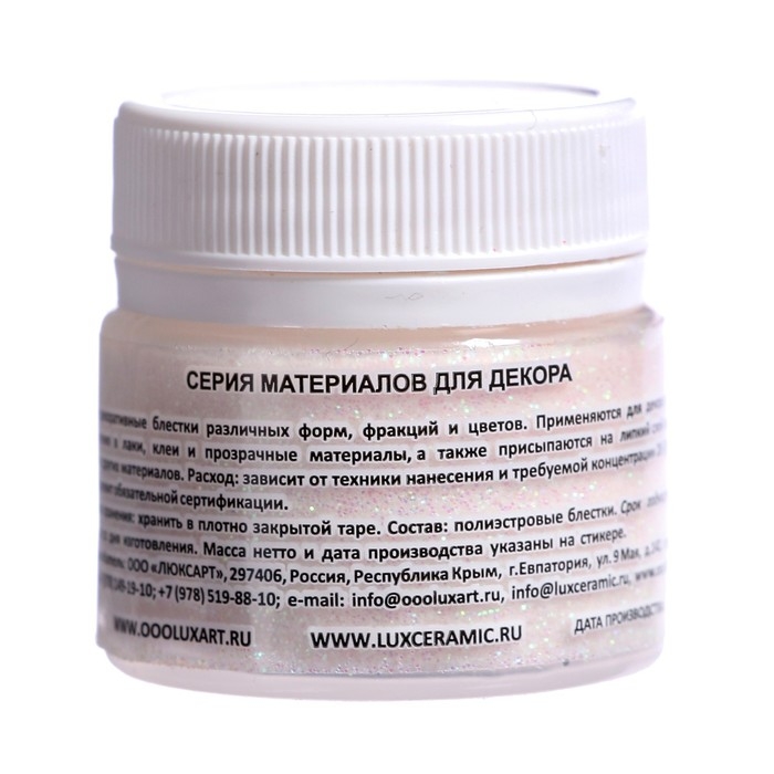 Декоративные блёстки LUXART LuxGlitter (сухие), 20 мл, размер 0.2 мм, голографический белый