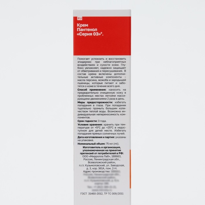 Крем для тела «Серия 03» пантенол 5%, 75 мл