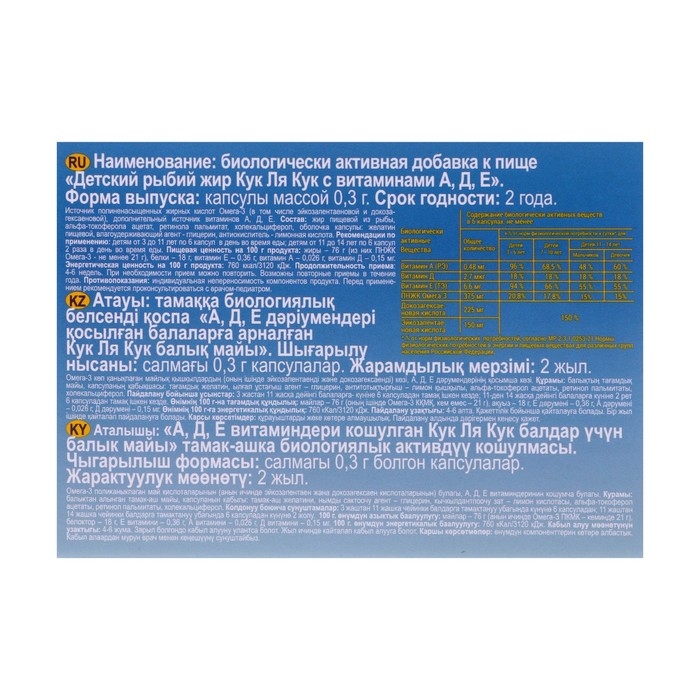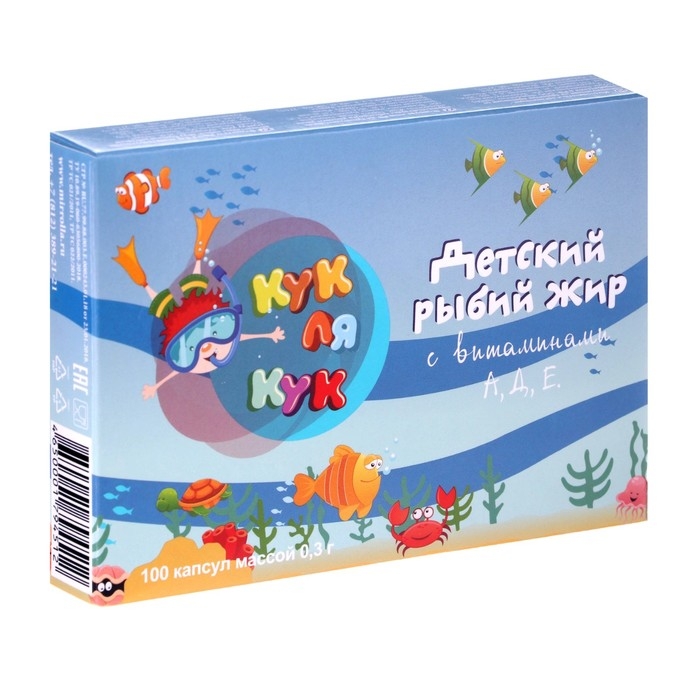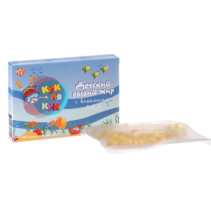 Рыбий жир «Кук Ля Кук» детский, с витаминами А,Д,Е, 100 капсул по 0,3 г