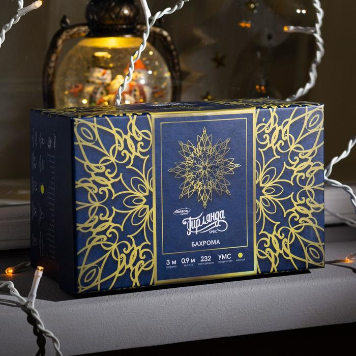 Гирлянда «Бахрома» 3 × 0.9 м, IP44, УМС, белая нить, 232 LED, свечение жёлтое, 220 В