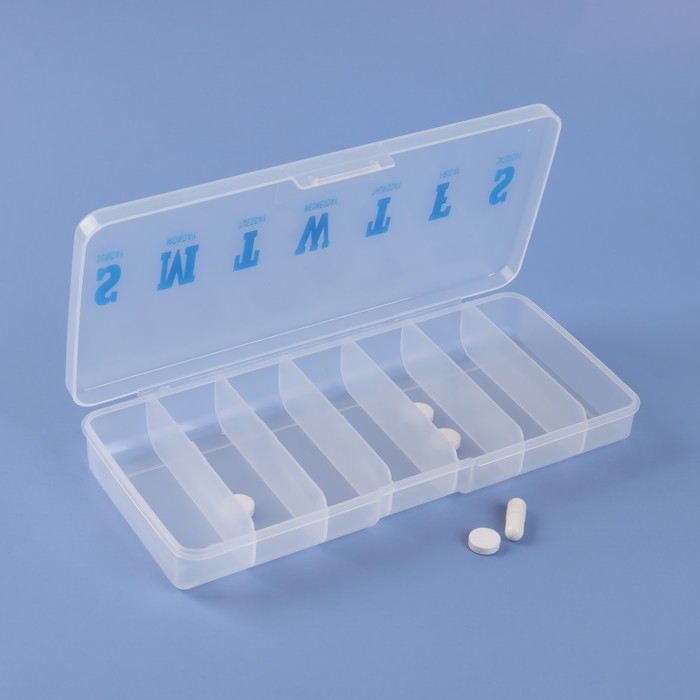 Таблетница «Неделька», английские буквы, 7 секций, цвет прозрачный