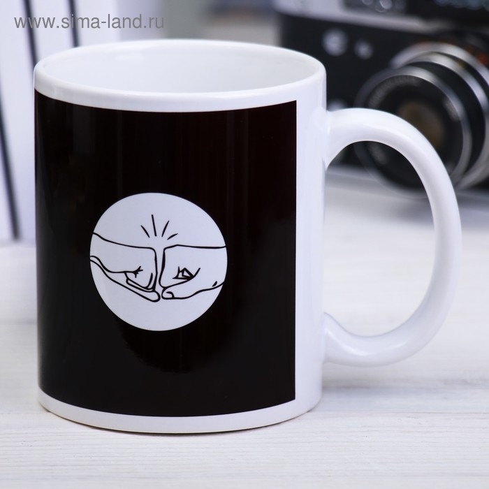 Кружка изготовлена из керамики. Рисунок нанесён методом сублимации, при котором краска проникает в верхний слой изделия, поэтому изображение получается стойким.