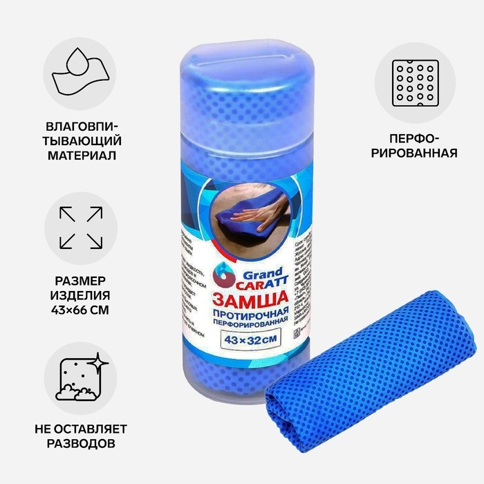 Замша протирочная Grand Caratt 43×32 см, перфорированная в тубе, синяя