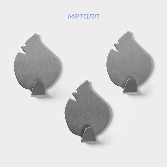 Крючки самоклеящиеся SAVANNA «Листики», 3 шт, металл, 4×3×1,5 см