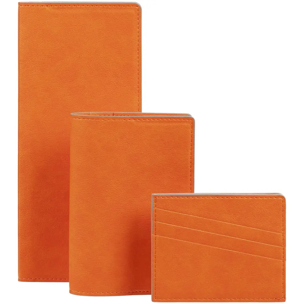 Чехол выполнен из материала Petrus, оранжевый ОО, дополнен окрашенным срезом края и внутренним карманом из серого картона.