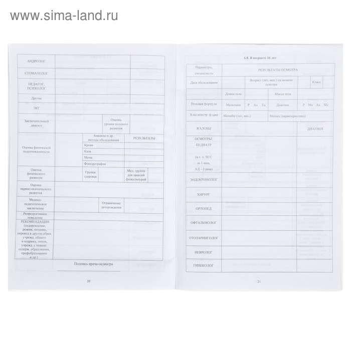 Медицинская карта ребёнка А4, 16 листов, обложка - мелованный картон 215 г/м², блок офсет 65 г/м². Форма № 026/у-2000