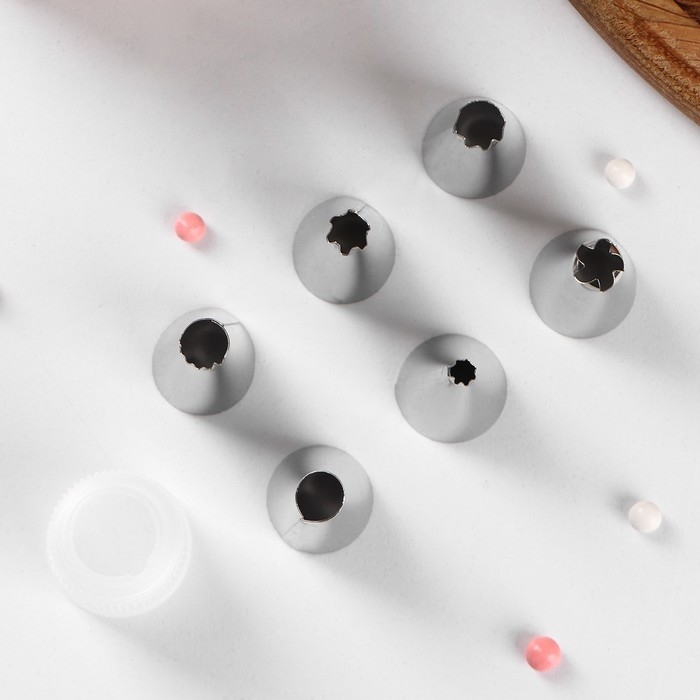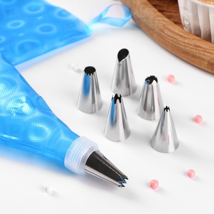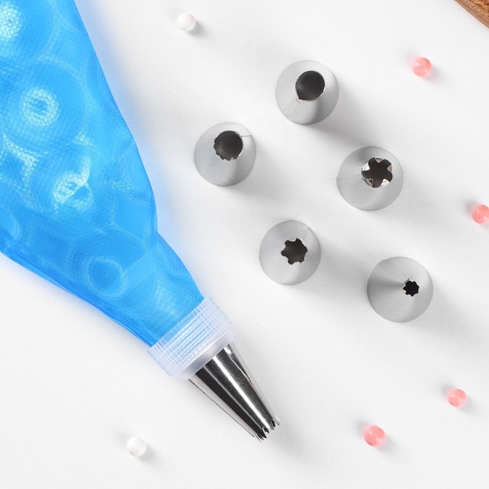 Набор кондитерский, 7 предметов: 2 мешка, 4 насадки d=2,5 см, адаптер