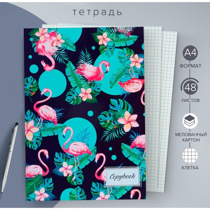 Тетрадь А4, 48 листов в клетку Calligrata "Фламинго", обложка мелованный картон, блок офсет