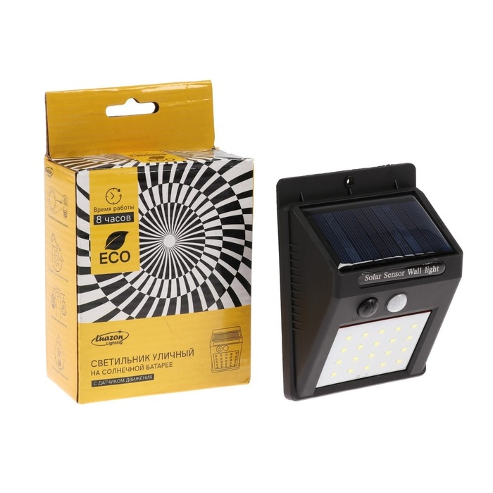 Садовый светильник на солнечной батарее с датчиком движения, накладной, 13 × 9.5 × 5.5 см, 100 LED, свечение белое
