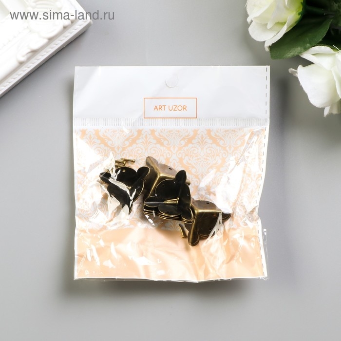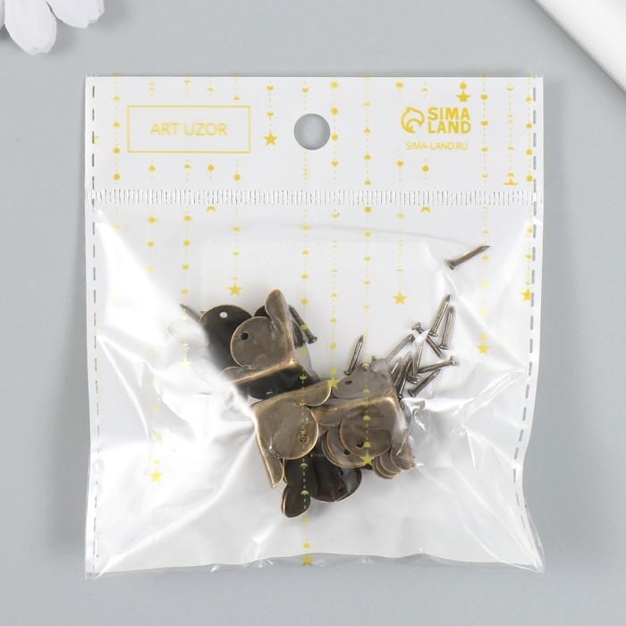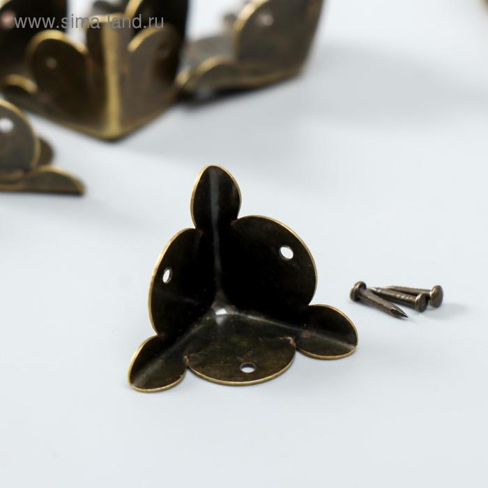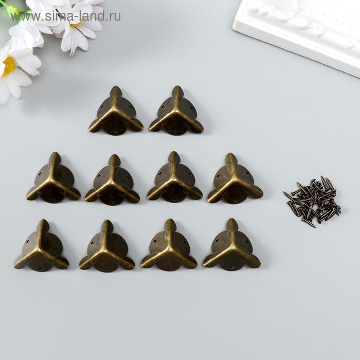Уголок металл "Треугольник" набор 10 шт+гвозд. бронза 1,8х1,8 см
