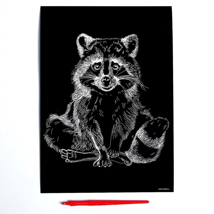 Гравюра на подложке «Енот» с металлическим эффектом «серебро» А4 — замечательный и оригинальный подарок, который понравится каждому любителю творчества!