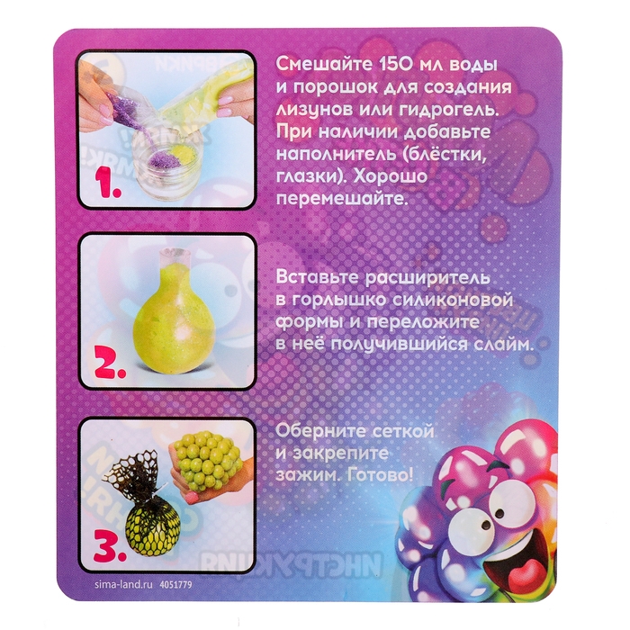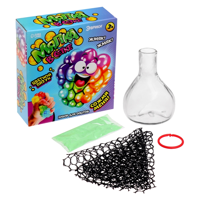 Набор для опытов «Мялка в сетке» позволит ребёнку провести увлекательный эксперимент по химии и создать необычную игрушку-антистресс своими руками.