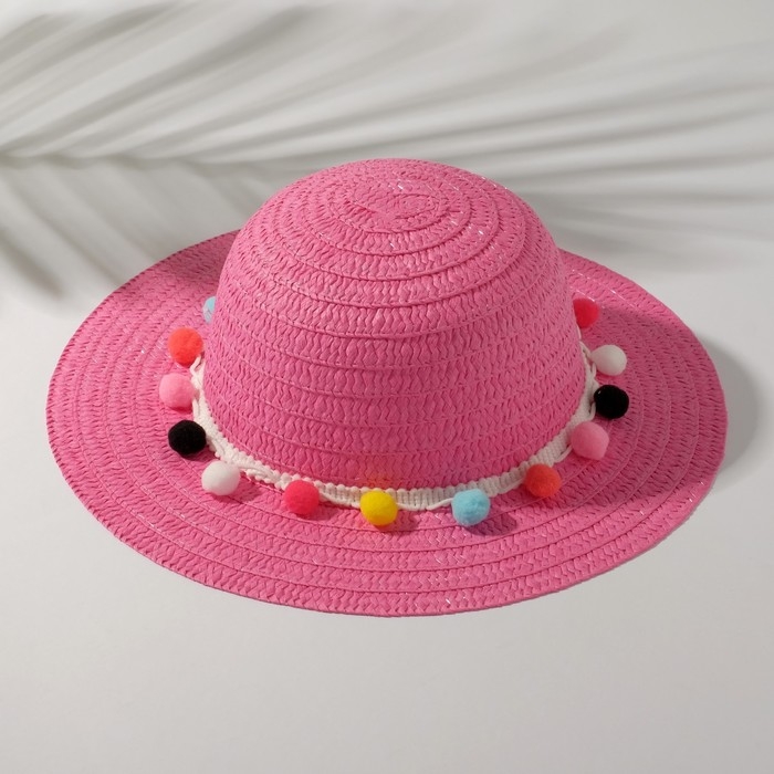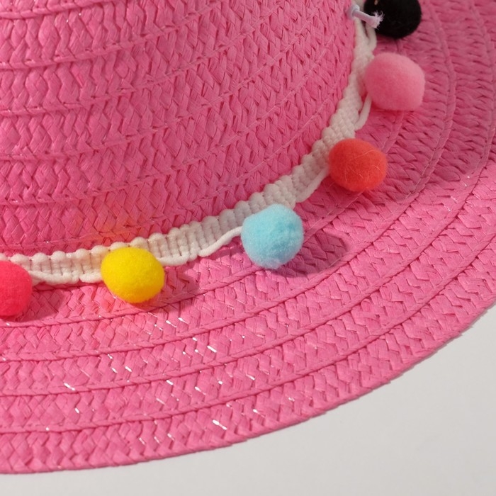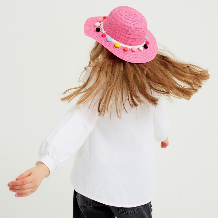 Шляпа с бомбошками для девочки MINAKU, размер 50, цвет розовый