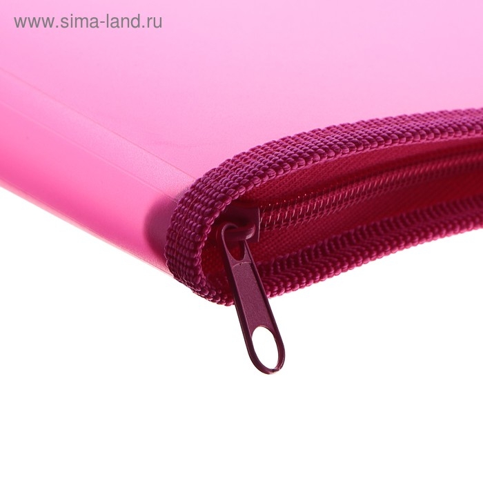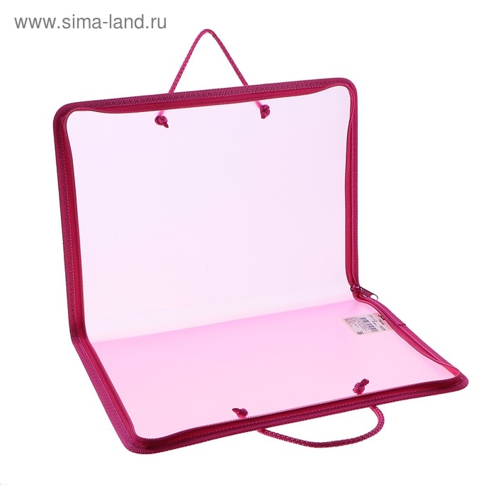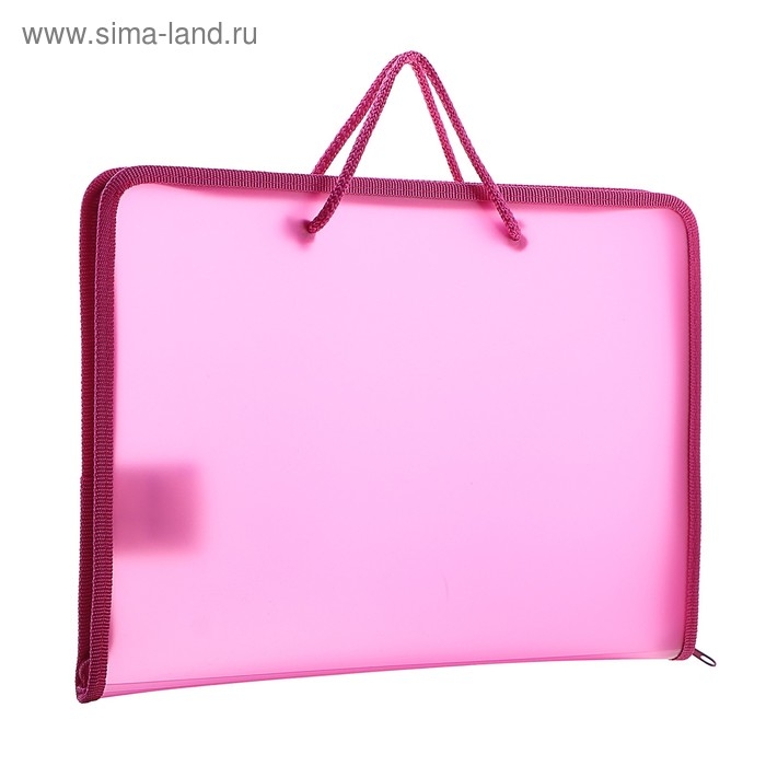 Папка с ручками А4, 230 х 185 х 25 мм, молния вокруг, пластиковая, ПТ-112, "Офис", тонированная, цвет розовый