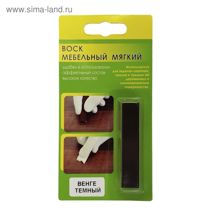 Воск мебельный ВМ-2 венге тёмный предназначен для заделки сколов, глубоких царапин и трещин на деревянных и ламинированных поверхностях (корпусная мебель, двери, паркет и тд.). Обеспечивает влагостойкость поврежденного участка.