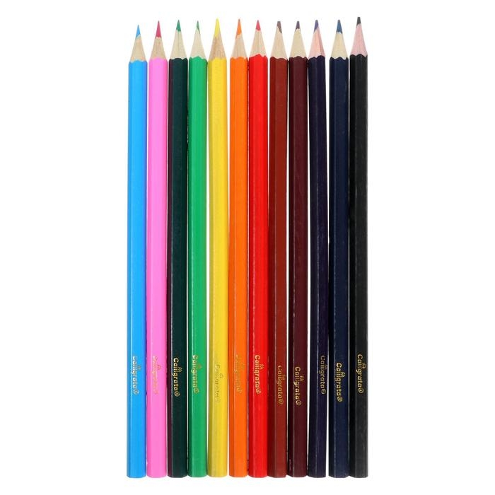 Карандаши 12 цветов, пастельные, деревянные, шестигранные