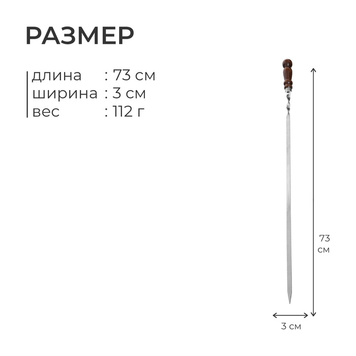 Шампур с деревянной лакированной ручкой, 73 х 1,2 х 0,25 см