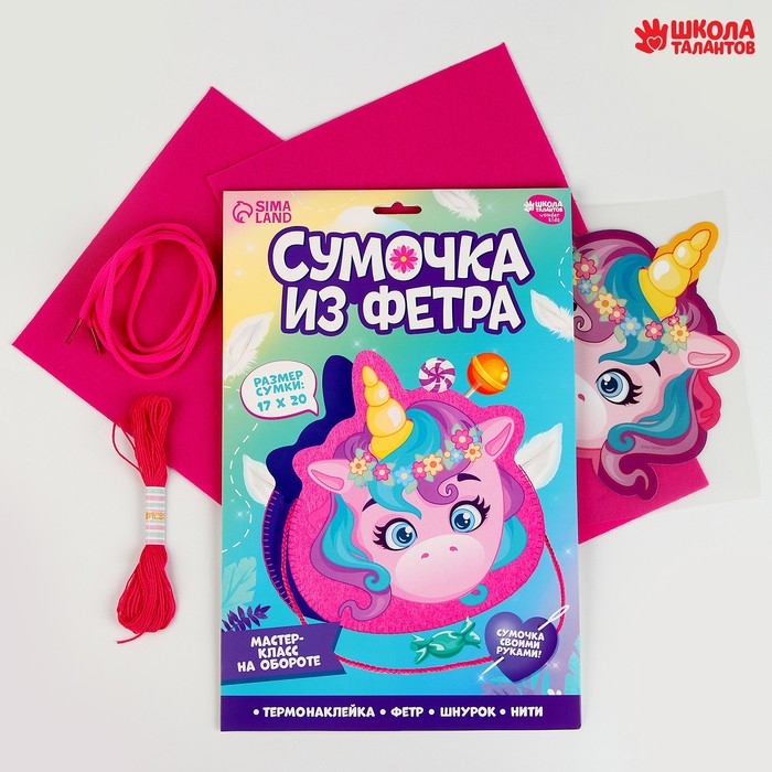 Набор для создания сумки из фетра «Волшебный единорог», с термонаклейкой