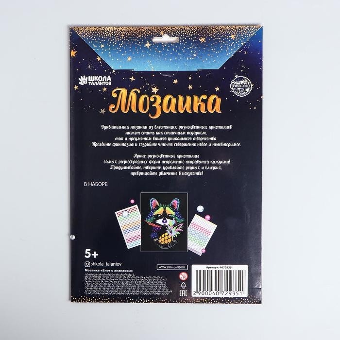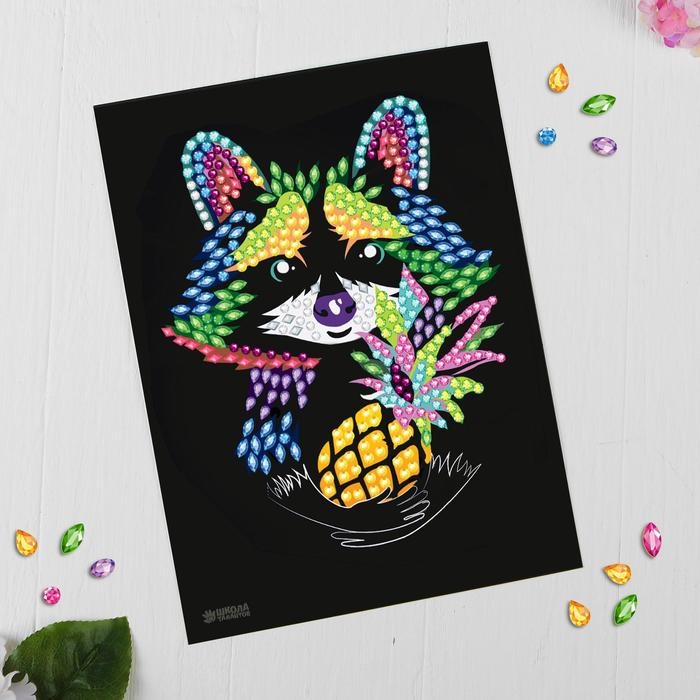 Мозаика стразами «Енот с ананасом» - яркая картина своими руками!