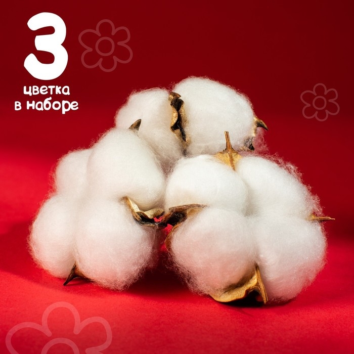 Сухие цветы хлопка, набор 3 шт., размер 1 шт. 6 × 6 см, цвет белый