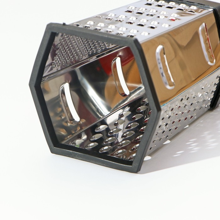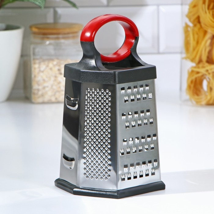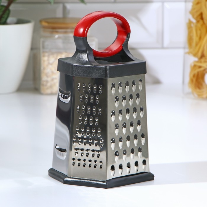 Тёрка шестигранная Доляна «Нео», 12,5×10,5×20,5 см, прорезиненное дно, цвет чёрный, красный