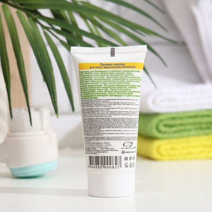 - Пилинг-скатка эффективно удаляет омертвевшие клетки и загрязнения, очищая поры и способствуя более здоровому и свежему виду кожи.