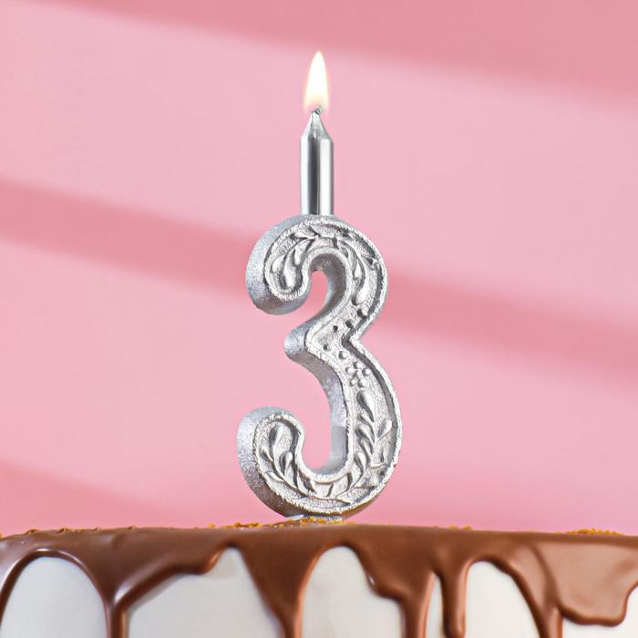 Свеча для торта цифра "Серебряный узор", 10,2 см, цифра "3"