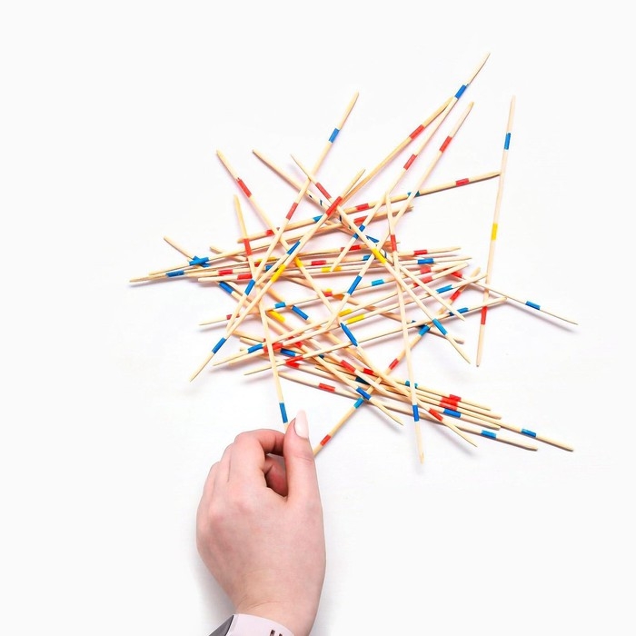 Итак, участникам предстоит по очереди вытягивать по одной палочке так, чтобы не пошевелить остальные. Если игроку это удалось, он пробует вытащить ещё одну. Не получилось? Наступает очередь следующего участника. Если одну палочку вытащили, а остальные пошевелились, то следующий игрок должен сначала положить эту палочку наверх, а только потом вытянуть другую.