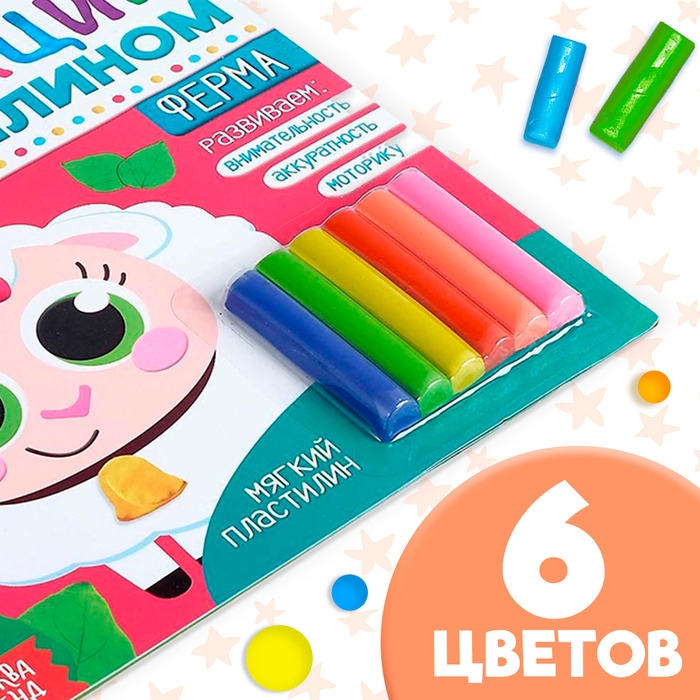 В комплекте есть разноцветный мягкий пластилин, поэтому можно сразу приступать к творческим занятиям с малышами.