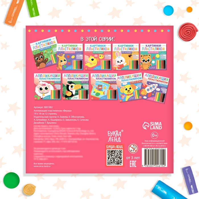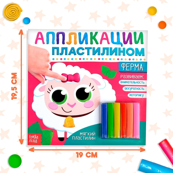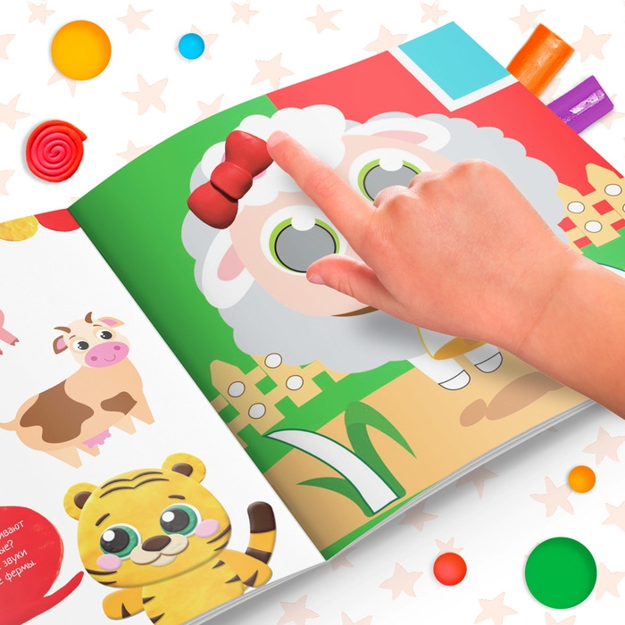 Книга для аппликации пластилином направлена на развитие моторики, внимательности и аккуратности у малышей.