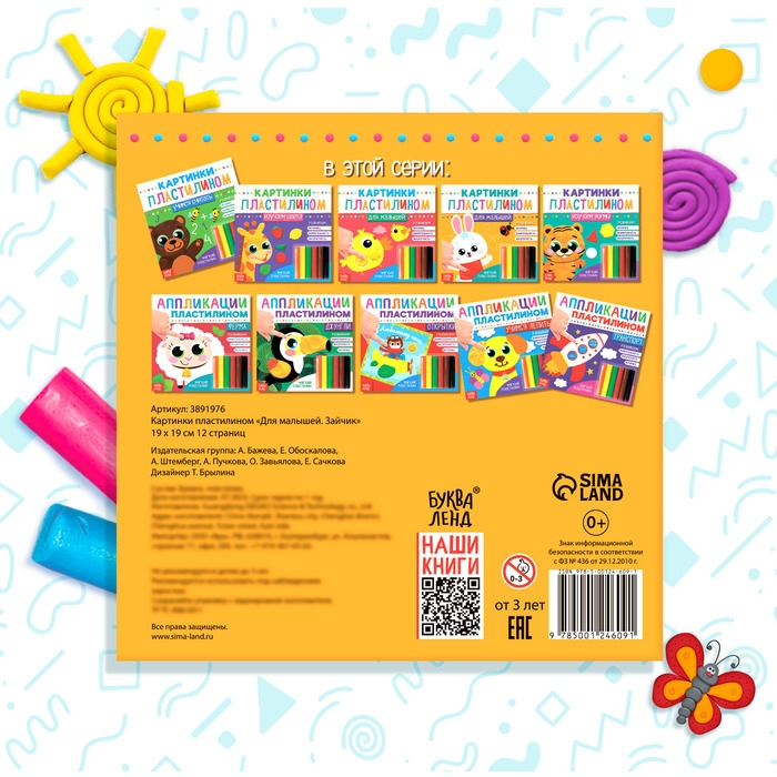 Аппликации пластилином «Для малышей. Зайчик», 12 стр.
