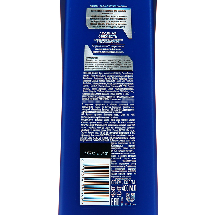 Шампунь для волос Clear Men «Ледяная свежесть», против перхоти, 400 мл
