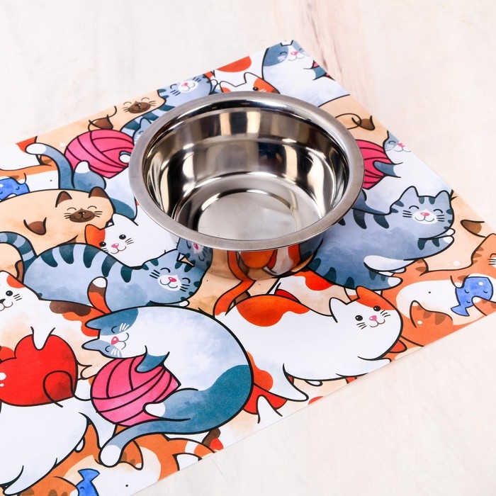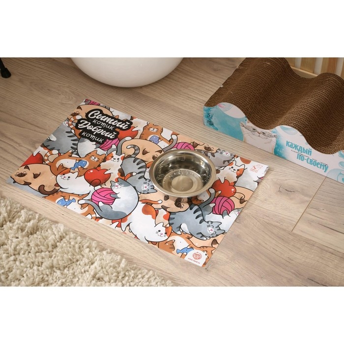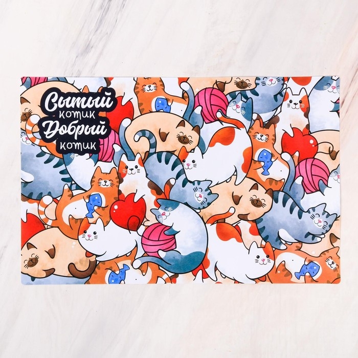 Коврик под миску «Кот не работает, кот ест!» 43х28 см