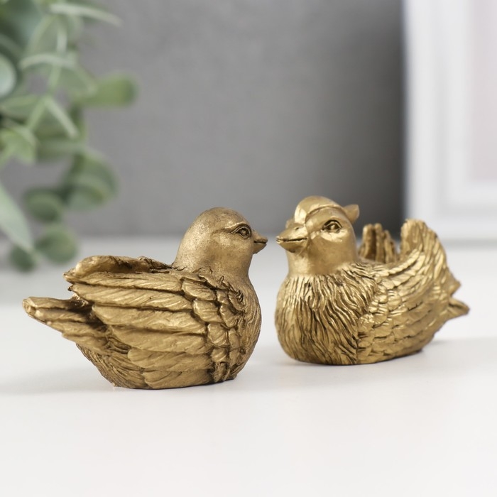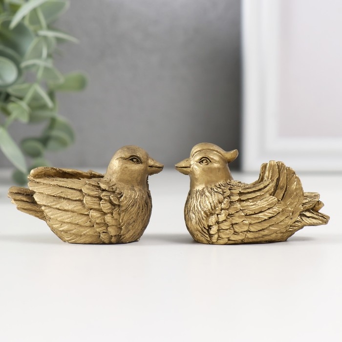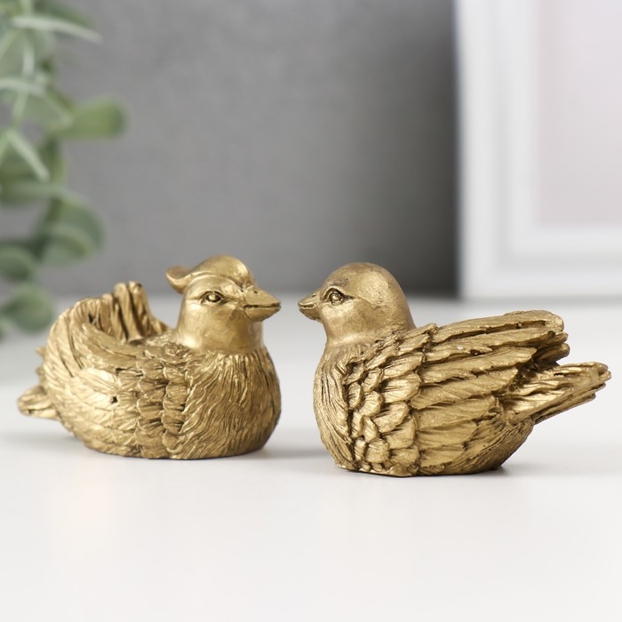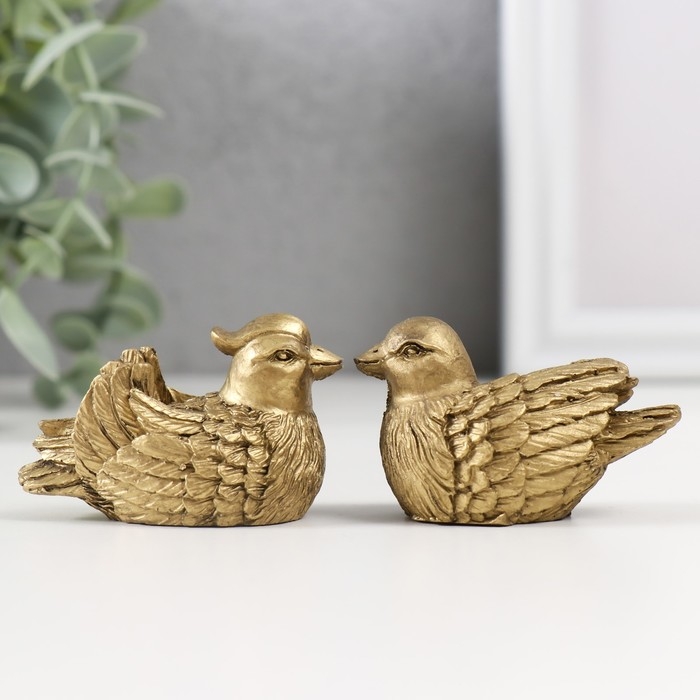 Нэцке полистоун бронза "Уточки-мандаринки" набор 2 шт 3,5х5,5х3 см