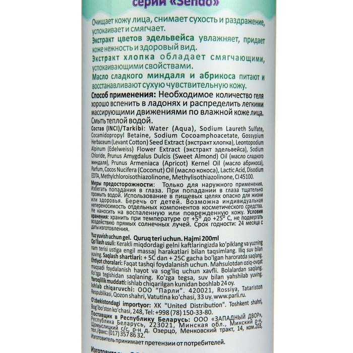 Гель для умывания Sendo для сухой кожи, 200 мл