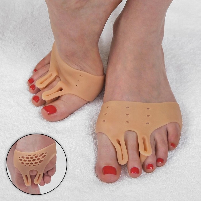 Корректоры - разделители для пальцев ног, на манжете, дышащие, 2 разделителя, силиконовые, 8 × 7 см, пара, цвет бежевый