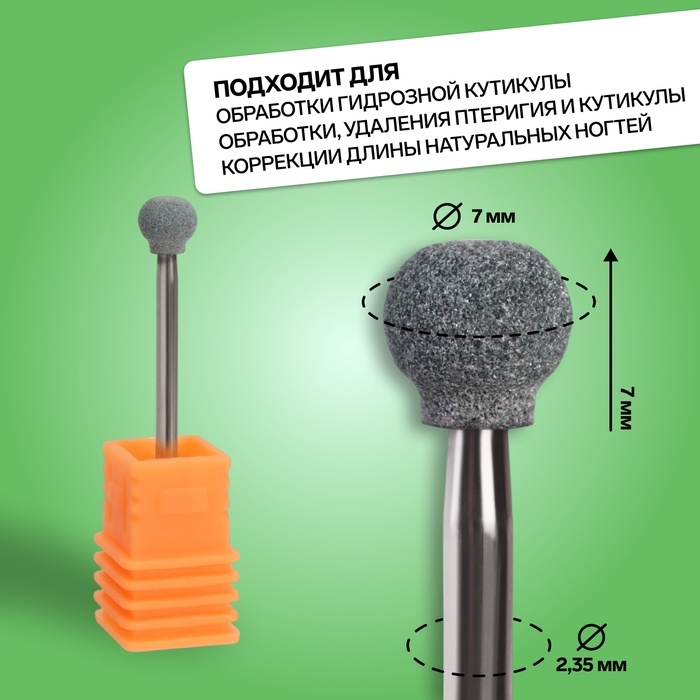 Фреза корундовая для маникюра «Шар», средняя жёсткость, 7 мм, в пластиковом футляре