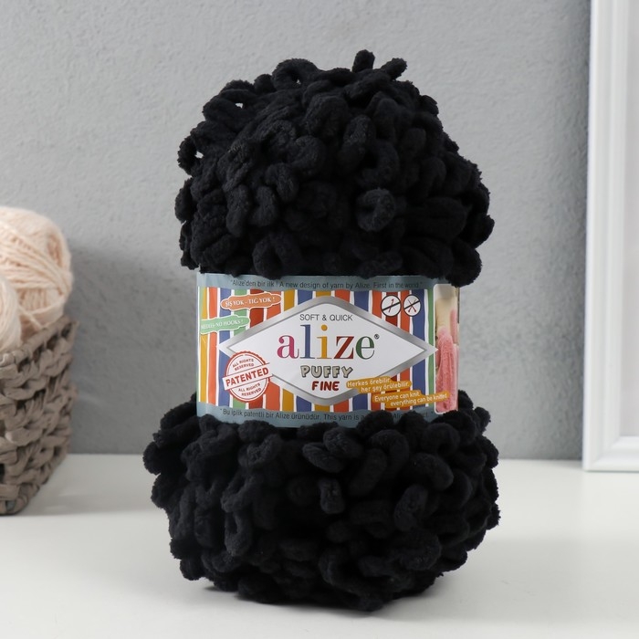 Пряжа "Puffy fine" 100% микрополиэстер 14,5м/100г (60 черный)