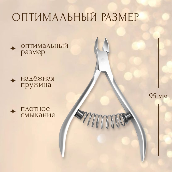 Кусачки маникюрные для кутикулы, пружинное соединение, 9,5 см, длина лезвия - 9 мм, цвет серебристый