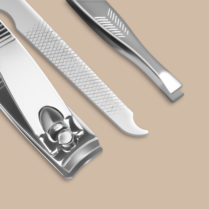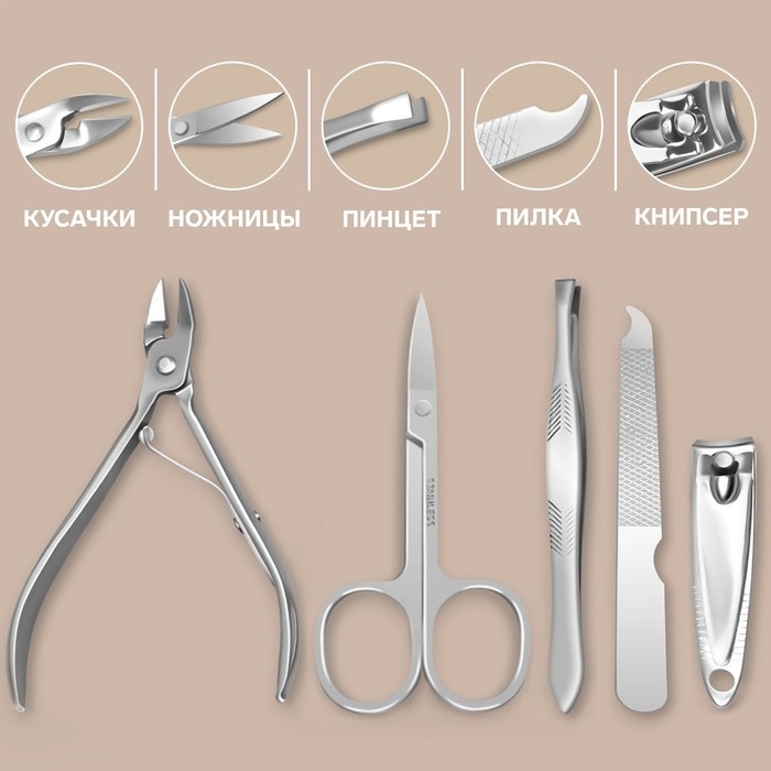 Набор маникюрный «С ЗАБОТОЙ», 6 предметов, в футляре, в PVC - коробке, цвет серый