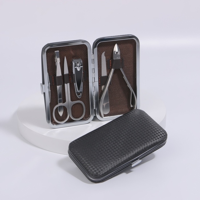 Набор маникюрный, 7 предметов, в футляре, цвет чёрный