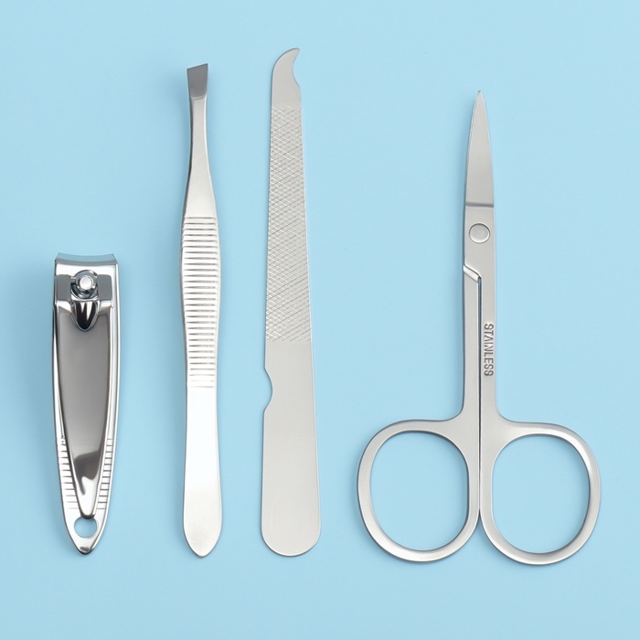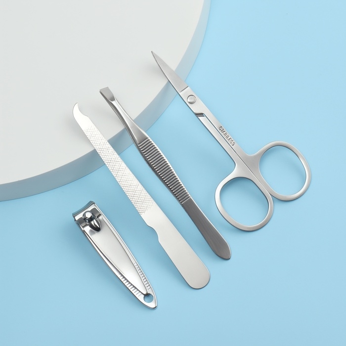 Набор маникюрный, 4 предмета, цвет серебристый