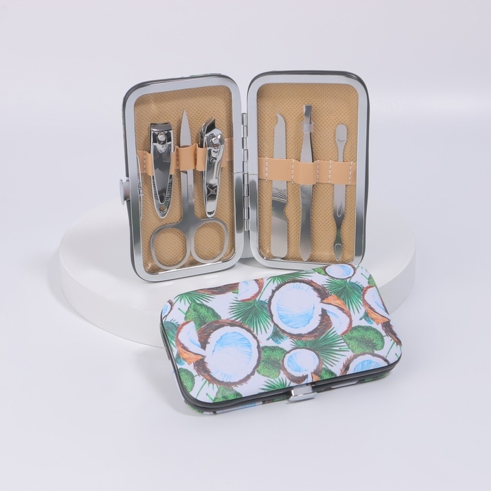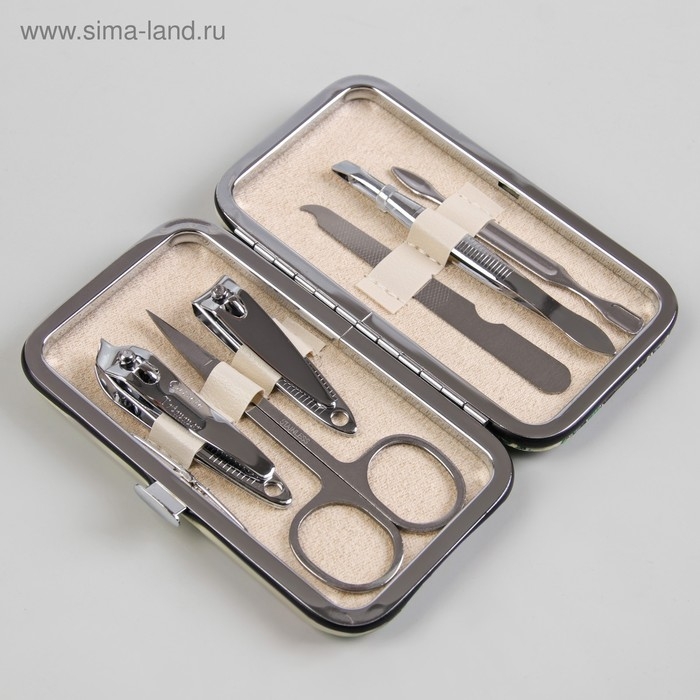 Набор маникюрный, 7 предметов, в футляре, цвет чёрный