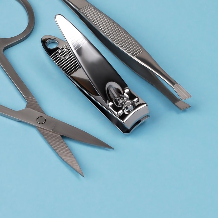 Набор маникюрный «С ЗАБОТОЙ», 6 предметов, в футляре, в PVC - коробке, цвет серый