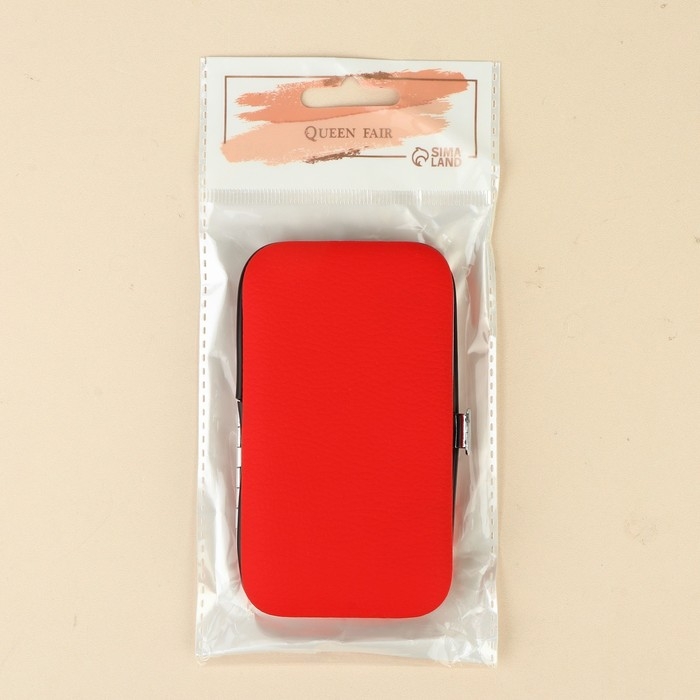 Набор маникюрный, 6 предметов, в футляре, цвет красный
