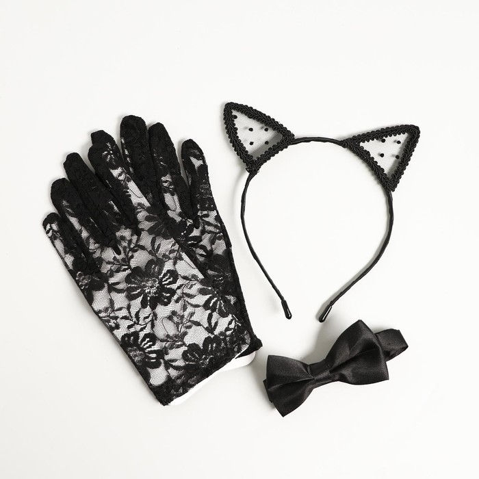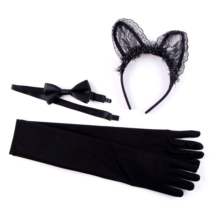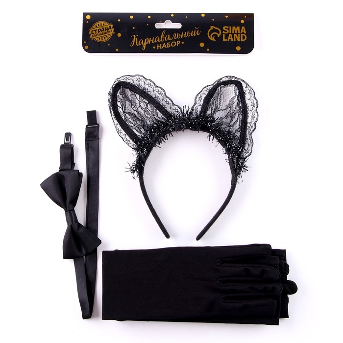 Карнавальный набор «Мяу» (ободок + ушки + перчатки + бабочка)